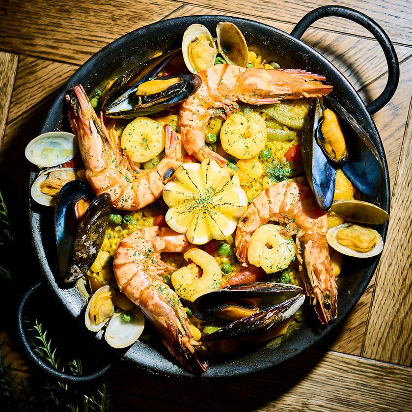 在日比谷这家西班牙酒吧,您可以享用著名的西班牙海鲜饭,并搭配多种葡萄酒,度过一个美好的夜晚。