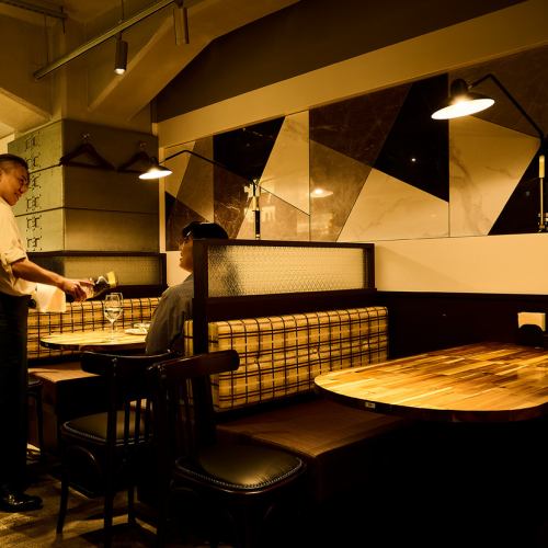 一侧舒适的沙发座椅非常适合小型聚会。我们将根据人数准备座位。欢迎您光临我们的餐厅,举办各种宴会、与朋友的饮酒聚会、女生聚会、生日和周年纪念庆祝活动等。